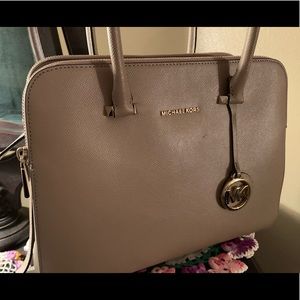 Michael Kors Huston satchel. Bought off the MK website, has two handles, and the long shoulder strap to carry as a crossbody. Tan color. Used a couple of months and is in great condition. Still have the original tag and care instruction card as pictured. Firm on price but open to offers through the offer button PLEASE! ππ