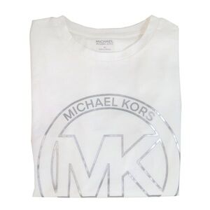 Michale Kors Women’s Silver Logo Cotton White Short Sleeve T-Shirt/Tee | NEW/NWT