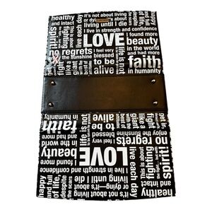 A beautiful BOLD look features faith, hope and love beautifully defined in white on a smooth black faux leather background. This is not just a Shell—it's a work of art. Pink Ribbon on lower left corner.