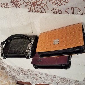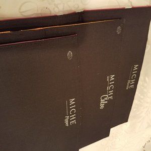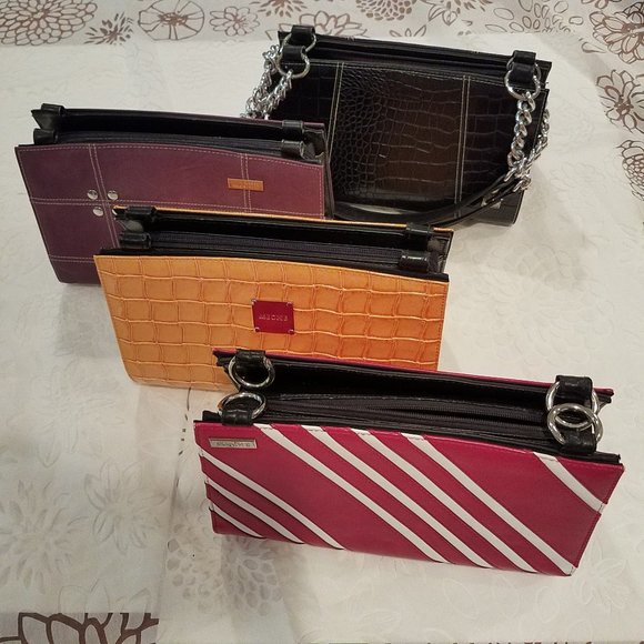 Spring deal. Compare the value! ONE like new EUC BASE w 4 COVERS appear never or only lightly used. A color to go with everything. Sophisticated Black croc, deep yellow Chloe. Lovely New in bag purple Piper, red w white stripe Nicole. Silver chain handles complete with carabiners needed to connect to base (often missing). See all pictures. Outstanding set + TWO surprise bonus items for more fun n style. Covers clip on in seconds. Secure zip top closure. Miche CLASSIC. Questions? just ask
