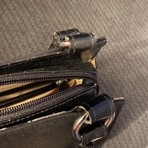 This is a stylish and functional Miche Classic Base Bag with a black strap that is perfect for any occasion. The bag has a solid pattern and a zip closure to keep your belongings secure. It has a medium size with dimensions of 11 in width, 7 in height, and 5 in depth.