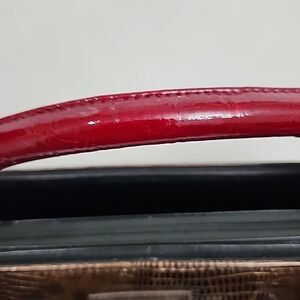This pre-owned bag is in good condition, although minor wear is evident. Please refer to the attached images for a detailed assessment of its condition and dimensions. Note that this bag is designed for use with interchangeable covers. This lot includes the base bag, a Vicky cover, and red patent straps. The bag is exceptionally elegant and sophisticated.