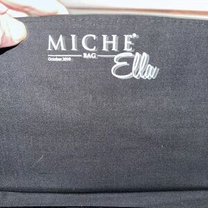 Lot of 2 Miche purse shells. One elegant black clutch with crocodile embossing and one brown. Features a sleek design.