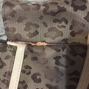 Stylish leopard print design, multiple zipper pockets for efficient storage, spacious interior for all your essentials, and durable and long-lasting material. Straps not included, this is the shell only. Some peeling noted on the bottom of bag as shown in photos.