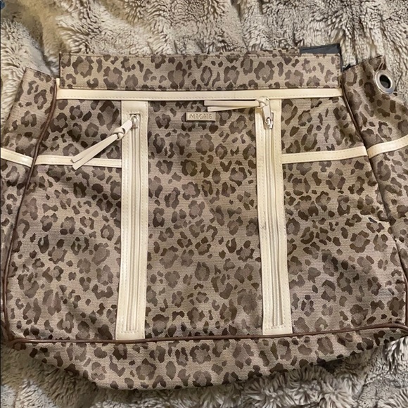 Gorgeous brown leopard print with front zippers and cream accents.