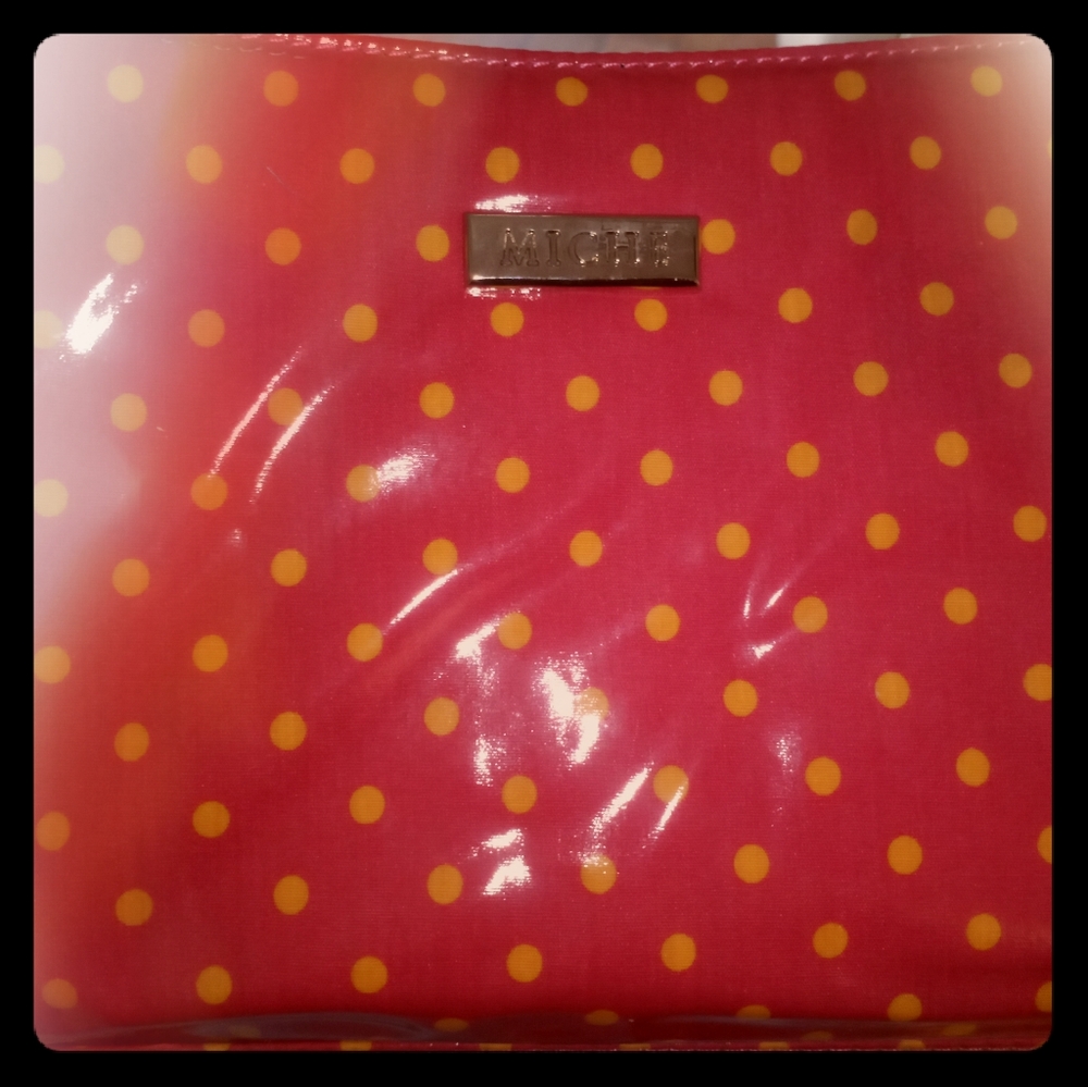 Pink with orange polka dots