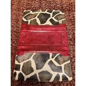 Miche vintage giraffe pattern red shell with red edge. Silver feet. Like new. Jayma classic. Miche logo plate in corner. #miche #giraffe