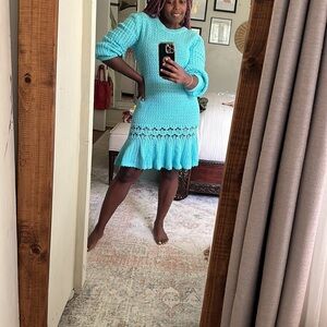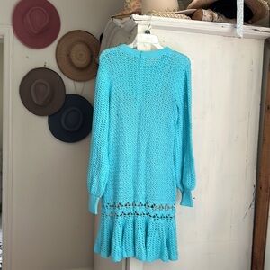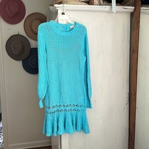 NWOT Micheal Kors aqua blue long sleeve crochet mini dress size M (fabric details is missing feels like cotton)