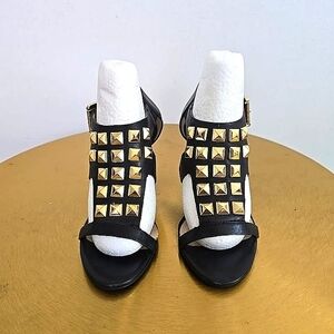 Micheal Kors Black Leather Heel With Gold Tone Embellishment Size 6.5M