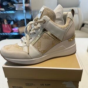 Micheal Kors | Georgie Leather and Glitter Chain-Mesh Trainer