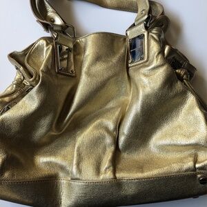 Micheal Kors Gold Runway bag. All leather, with Polished Brass Fittings al the way around the bag. Classy. Hardly used at all, looks perfect.