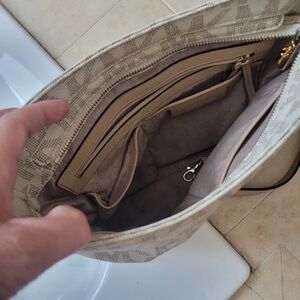 MK Jetset large crossbody with matching wallet. Some stains and signs of wear and tear visible, predominantly on the wallet. More pictures available upon request.
