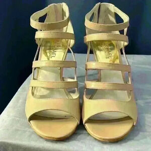 Micheal Kors Mavis Open Toe 3.5in Heels in Nude. Right heel had a very small paint smear on the bottom, I tried to clean it and the picture shows the results. These beautiful Shoes are LIKE NEW condition and retail for $195 but I am going to pass the savings to you and you can grab them here for $75!!