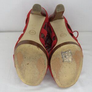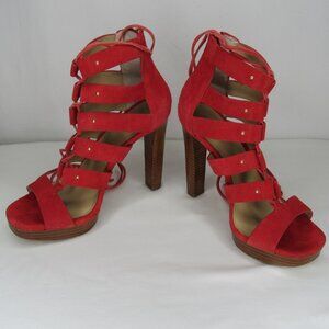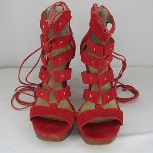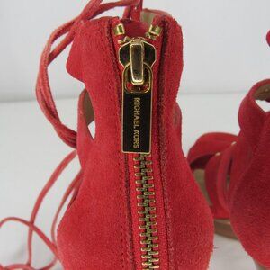 Micheal Kors Red Suede leather SOFIA Lace Up Gladiator Heel Sandal 4" Women's 7