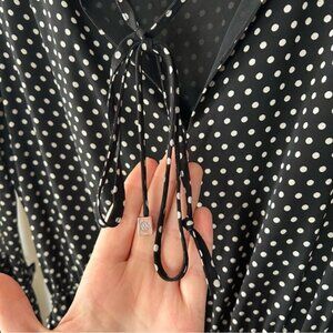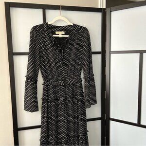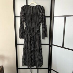 Micheal Kors Sheer Black With White Polka Dot Long Sleeve Ruffle Maxi Dress