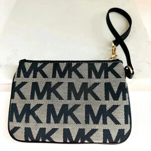 Description:A Chic and Convenient way to carry your essentials on a night out. This Michael Kors Wristlet is the trendy and comes with a top zip closure, 2 interior slip pockets, leather wrist strap and leather trim and Golden logo plate on front