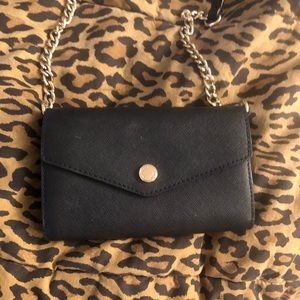 Micheal Kors black crossbody w/ removable gold strap outside pocket