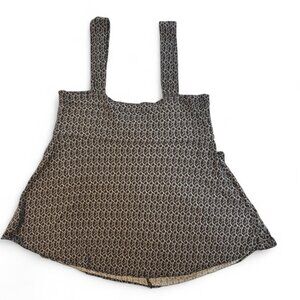 brown print, baby doll top, sleeveless, vintage-inspired, lightweight, floral pattern, gathered straps, casual summer, chiffon fabric, Ruffled detail
