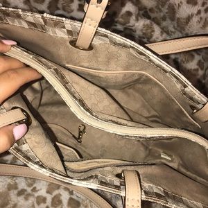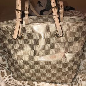 Gold & cream metallic checkerboard Micheal Kors purse only used 3 time still brand new just a little dye from rubbing on jeans on back strap $300 or best offer