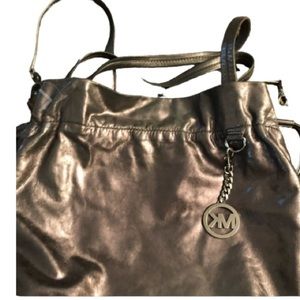 Micheal Kors large pewter -Silver Metallic foil like ultra soft shoulder bag