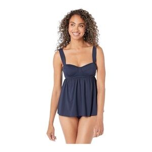 This baby doll is ready for fun in the sun! A fun and floaty look, Michael Michael Kors' navy tankini top features a classic sweetheart neckline, underwire and light padding for support, and thick straps.