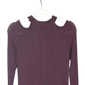 Like new condition. Micheal Stars size XS. Retail $158. Lined with soft knit fabric. Burgundy and black heather. Ribbed knit fabric. Mock turtle neckline. Cold shoulder detail. Long sleeves. has stretch. Shift Silouhette. Chest 34 inches. Shoulder to hem 36 inches. Sleeve length 28 inches. Smoke and pet fee home.