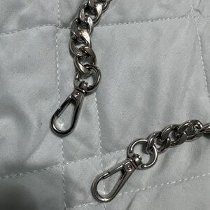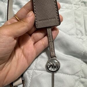 Strap to make purse a crossbody with silver hardware and key design keychain