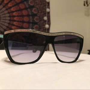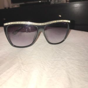 I'm selling my gently used authentic Michael Kors sunglasses. I love these glasses they are super cute and I love the way they feel on my face, you can tell that they aren't cheaply made. I'm more of an aviator person and I'm looking for Raybans, and I'm ready to part with these! There's no scratches but there are two tiny little jewels missing on the top that I have photographed above, u truly can't tell and it was really hard for me to even get a photo good enough to see that they were missing
