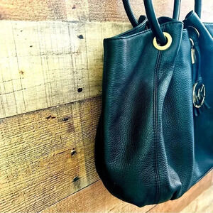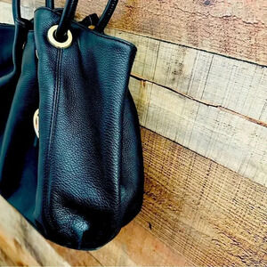 Micheal Kors Black Leather Medium East West Ring Tote Purse