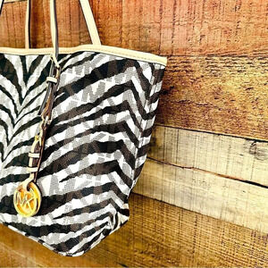 Micheal Kors Rare Medium White Tiger Jet Set Travel Tote