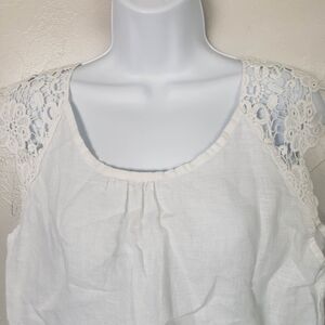 Michel Angelo 100% Linen White Short Sleeve Blouse Made in Italy Lightweight Top