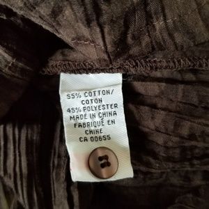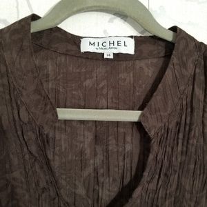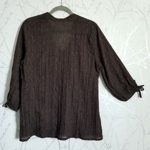 Michel Antoni Brown Sheer Burnout Crinkle Button Up Blouse 3/4 Sleeves