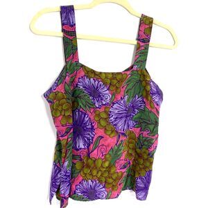 Michel Bruche VTG Purple Pink Floral Tropical Unlined Summer Artsy Tank Top 6