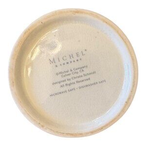 This ceramic canister by Michel & Company evokes a vintage charm with its embossed texture, delicate floral design, and sculptural lid. A functional yet decorative piece.