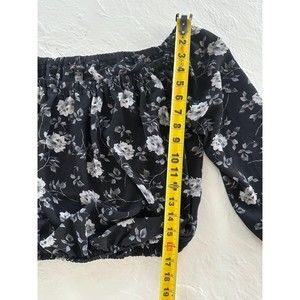 Michel Cropped Off The Shoulder Floral Top. Has an elastic band on the bottom of the top as well as on the sleeves.