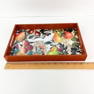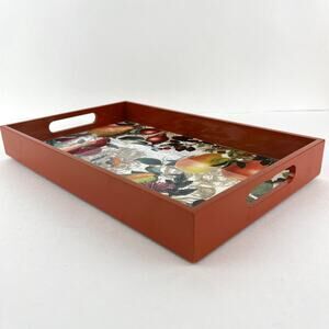 A beautiful tray that can be used as room decor, or as a functional serving tray. A bright enhancement to any room. Measures 12.5" x 8" x 1.5".
