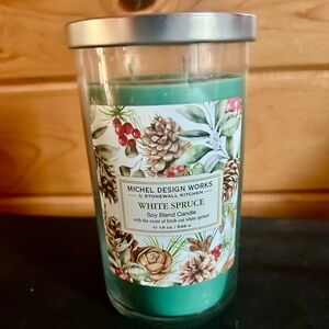 Enjoy the refreshing aroma of white spruce with the Michel Design Works Soy Blend Candle. Its elegant green color adds a natural touch to your home decor.