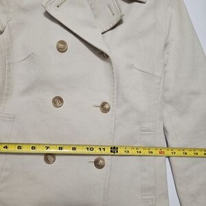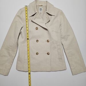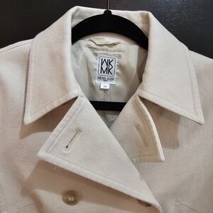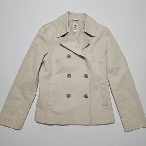 Michel Klein Paris Double Breasted Wool Blend Peacoat Coat Medium Beige