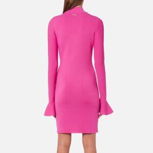 Michel Kors pink fitted midi dress with flare long sleeves small size