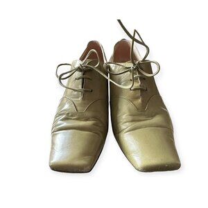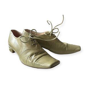 Michel Perry Square Toe Lace Up Flats, Green, Size 37.5 EU