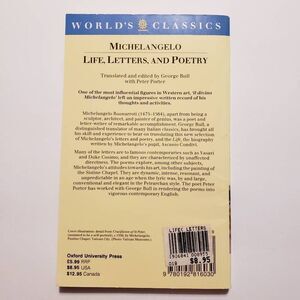 World's Classics Michelangelo Life, Letters and Poetry...1987 paperback spine not broken 159 pages, yellowing due to age