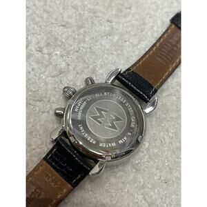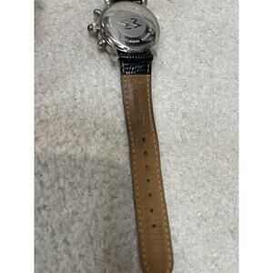 Elevate your wristwear with this elegant Michele CSX Diamond Chronograph watch. Crafted with a stainless steel case and featuring a mother of pearl dial adorned with diamond accents, this watch offers both luxury and functionality. The quartz movement ensures precise timekeeping, while the chronograph functionality and date display add practicality. Despite minor scratches on the face and some discoloration on the leather strap, this timepiece remains a sophisticated accessory for any occasion. Authenticity is guaranteed, making it a valuable addition to your collection.