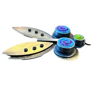 • Fabricated oxidized sterling silver, 18k Bi-metal jewelry set with wool felt