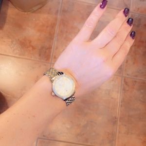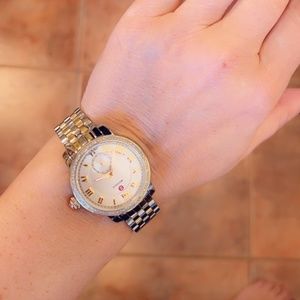 Michele Gold/Silver Harbor 2 Tones Dial Mww28a000002 Watch NWT