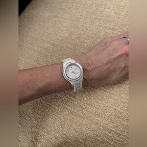 Authentic Michele Jetway white ceramic watch with quartz movement. Great condition. New battery.