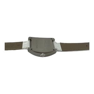 This diamond Michele watch is set in stainless steel with a diamond bezel and white leather band
