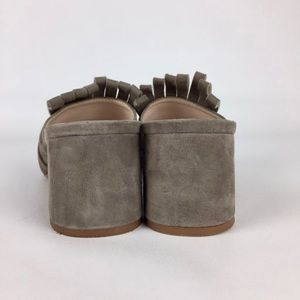 Michele Lopriore Womens Slide Sandals Taupe Suede Fringe Italian size 38 US 8