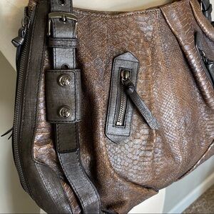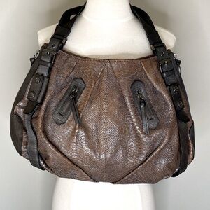 Michele Purse Rusted Brown Snake Print Leather Satchel