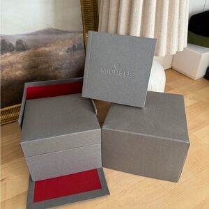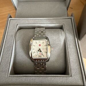 Stylish Michele watch in silver. Comes with a gray box. Perfect for any occasion. In Good pre loved condition. Make an offer!