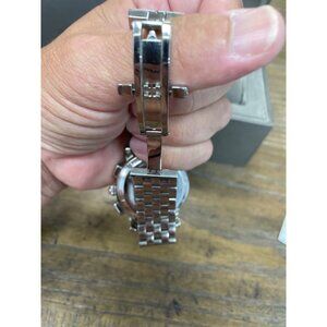 This Michele watch combines elegance and functionality in a stainless steel design. The chronograph feature adds a sporty touch, while the luxurious presentation box enhances its gifting appeal. It's a timepiece that balances timeless sophistication with modern practicality.